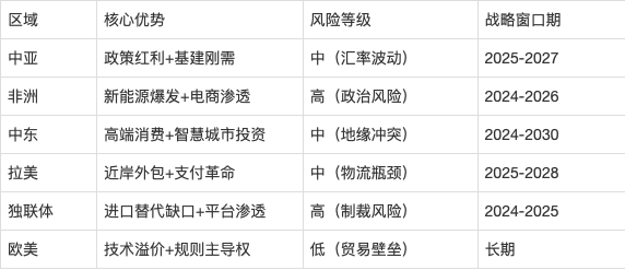 1。 中亚/非洲:设立区域供应链枢纽(如哈萨克斯坦阿拉木图、肯尼亚蒙巴萨),整合“跨境电商+海外仓+当地化办事”。