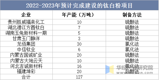 钛白粉进出口变更而言,国内全体钛白粉进口量不变正在15-22万吨摆布,而跟着全球全体钛白粉需求持续增加,我国已成为全球最主要的钛白粉出口国之一。按照海关总署数据显示,我国钛白粉出口量自2015年的53。84万吨逐年增加,2022年已达到140。6万吨,进口量而言,全体国内产能持续扩张全体进口有所下降,2022年进口量仅12。3万吨,较2021年较着下降。本文节选自华经财产研究院发布的《2022年中国钛白粉财产产能、产量、出口需求持续增加「图」》,如需获取全文内容,可进入华经谍报网搜刮查看。2022年估计新减产能而言,2022年钛白粉市场存正在不少新减产能,硫酸法全体产能增加正在多个企业,较为分离,次要有贵州胜威福泉化工、国诚矿业,氯化法相对集中,产能逐渐落地将带动钛白粉产量持续增加。